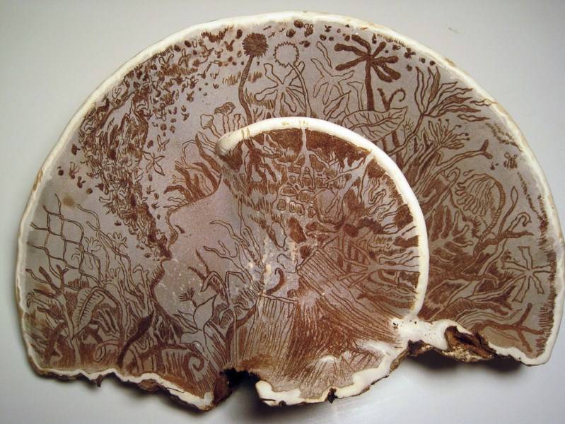 My work has shifted several times over in recent years: from mixed media drawings and sculptures to engravings using real tree fungus to digital drawings and animations. Part of this is just the natural process of responding to new ideas and images in daily life, but the most dramatic shifts are usually the result of a new studio space or taking on a project that’s outside my comfort zone in terms of scale or format. I used to regard these shifts as problematic or as a setback to the overall trajectory of the work, but now I really look forward to the change in perspective, even if the jump looks drastic to an outsider. Taking on ambitious projects or being confronted with a very different working environment can be an effective way for me to reassess process, learn new techniques, or move concepts from off the back burner. Over time, it’s exciting to see patterns emerge across media or from seemingly disparate bodies of work.